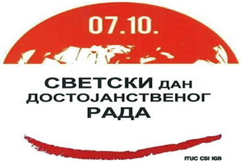 Свака особа би требало да има посао који јој омогућава да живи добар живот, у којем може да испуни своје основне потребе. Пристојан и достојанствен посао је у центру пажње за Светски Дан Достојанственог рада (WDDW). Светски Дан Достојанственог рада је прилика за синдикате да се прикључе глобалној акцији и организују разне активности, којима ће се обележити овај дан. Економска криза и чињеница да су у целом свету присутна растућа незапосленост, социјална неједнакост и нестабилност у исто време доводе питање будућности за хиљаде грађана, чији је рад недовољно плаћен и деградиран. Тим поводом Конфедерација слободних синдиката користи прилику да Вас позове да нам се 7. октобра 2010. придружите у борби за ДОСТОЈАНСТВЕН РАД И ДОСТОЈАНСТВЕН ЖИВОТ!