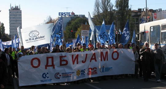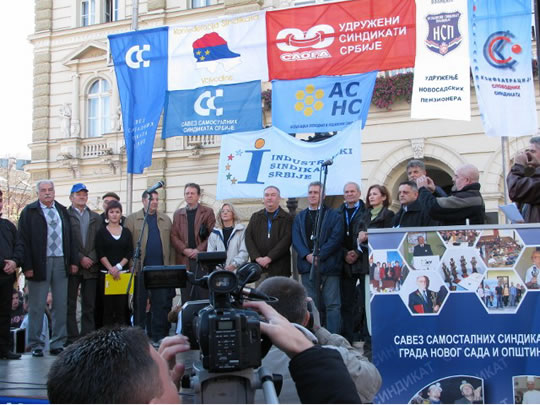 Саопштење за чланствоОДРЖАН ПРОТЕСТ ПЕТ СИНДИКАТА У НОВОМ САДУ