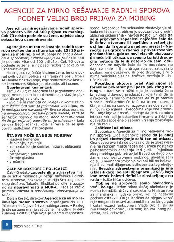 Мобинг: АГЕНЦИЈИ ЗА МИРНО РЕШАВАЊЕ РАДНИХ СПОРОВА ПОДНЕТ ВЕЛИКИ БОЈ ПРИТУЖБИ