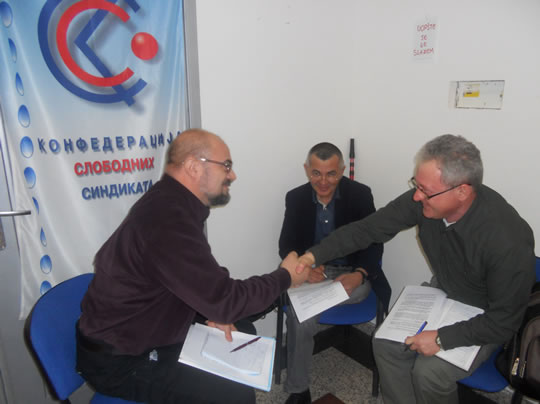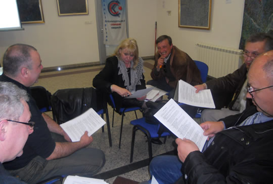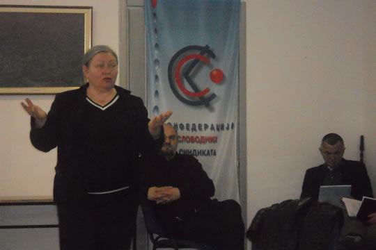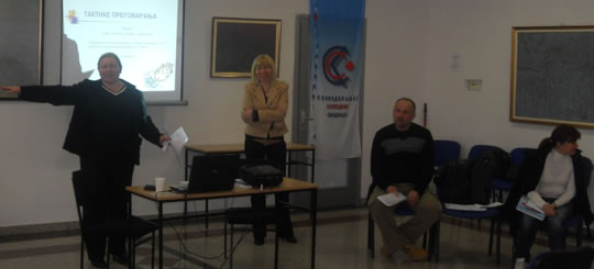 18.04.2011. ОДРЖАН СЕМИНАР "КОЛЕКТИВНО ПРЕГОВАРАЊЕ" ЗА СИНДИКАЛНЕ ПОВЕРЕНИКЕ ИЗ РЕГИОНА БЕОГРАДУ организацији Конфедерације слободних синдиката 15. и 16. априла 2011. године одржан је семинар "Колективно преговарање" у Београду.Предавачи су били Веселин Мујовић, правник, Ружица Јелисавац и Лидија Милановић, саветнице за социјалну заштиту у Републичком Заводу за социјалну заштитуЦиљ семинара био је да учесницима семинара пружи основна знања и информације из области колективног преговарања и законске регулативе који се односе на актуелне теме и тиме допринесе бољем разумевању проблема као и учешћу у проналажењу конструктивних решења и постизању договора током преговарања. Један од задатака семинара био је и да се учесници упознају са принципима МОР-а о праву на колективно преговарање и кроз активно учешће у радионицама:-формулишу предлоге и преговарачке стратегије;-припреме за преговоре;-формирају преговарачки тим;-прикупе и анализирају информације;-да се симулира ситуација ''за преговарачким столом'' и шта урадити након преговора.Практичан део семинара је изведен кроз радионицу, дискусију и студију случаја, како би учесници имали прилике да у сарадњи на конкретним примерима из праксе, са колегама размотре могуће начине како стране у преговору могу приступити колективном преговарању и који су то начини који воде успешном договору.Овакав вид сарадње и едукације се показао као потребан и користан за даљи рад повереника а самим тим и за унапређење рада синдиката. Семинар је оцењен као веома успешан и од стране предавача и од стране самих учесника.Захваљујемо се свим учесницима семинара на сугестијама које су нам упутили путем анкете. Позивамо све наше чланове на даљу сарадњу и учешће на будућим семинарима који ће бити организовани за поверенике из осталих региона. Такође најављујемо и наставак едукације на тему колективног преговарања на вишем нивоу.Секретаријат КССПогледајте фотографије са семинара: