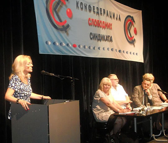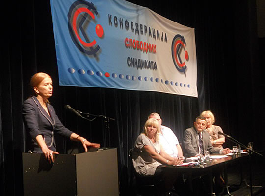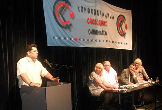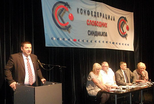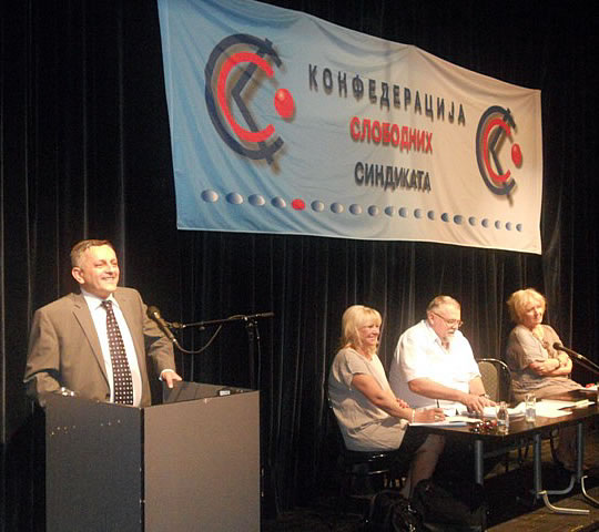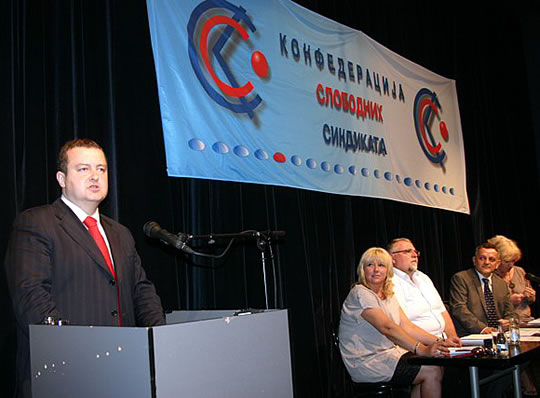 у Београду 27.06.2011. ОДРЖАНА ИЗБОРНА СКУПШТИНА КОНФЕДЕРАЦИЈЕ СЛОБОДНИХ СИНДИКАТА- ИВИЦА ДАЧИЋ ПОДРЖАО СИНДИКАТЕ -Изборна седница Скупштине Конфедерације слободних синдиката одржана је 24 јуна у Београду.Скупштина је великом већином подржала рад руководства и поново указала поверење председнику Конфедерације слободних синдиката Ивици Цветановићу, верификовала мандате досадашњим члановима Председништва Конфедерације: Александру Павловићу, Мирославу Јоксимовићу, Славољубу Кандићу, Славку Топалову, Милану Ђорђевићу, Златку Миладиновићу, Ненаду Стојановићу, Зорану Радифковићу, Анкици Степановић, Драгици Дашић и Цвети Трифиновић. На Скупштини су изабрани и нови чланови Надзорног и Статутарног одбора.Седници Скупштине су, као гости, присуствовали и председници других републичких синдиката (АСНС, СЛОГА, Индустријски синдикат), Независног синдиката полиције, послодавачке организације - Асоцијације малих и средњих предузећа, Снежана Ристановић, директорка Добровољног пензијског фонда „Raiffeisen future“, проф. др Дарко Маринковић и други.Позиву Конфедерације су се одазвали и представници Владе и ресорног Министарства: Ивица Дачић, министар полиције и потпредседник Владе Републике Србије и Снежана Лакићевић, државни секретар у Министарству за рад и социјалну политику.Ивица Дачић је, у свом обраћању присутнима, истакао значајну улогу синдиката за успостављање социјалне правде и друштвених односа у Србији према европским стандардима. Истакао је потребу друштва за одговорнијом економском и социјалном политиком државе, пре свега према радницима, како би се обезбедио бољи животни стандард свих грађана.Снежана Лакићевић је у свом излагању изнела проблеме у спровођењу социјалног дијалога на нивоу Републике Србије, који су настали због лоших законских решења и критички се осврнула на рад постојећег Социјално-економског савета. Истакла је да Конфедерација има своје место у социјалном дијалогу на нивоу државе, јер је према свим критеријумима доказала своју репрезентативност.КОНФЕДЕРАЦИЈА СЛОБОДНИХ СИНДИКАТА