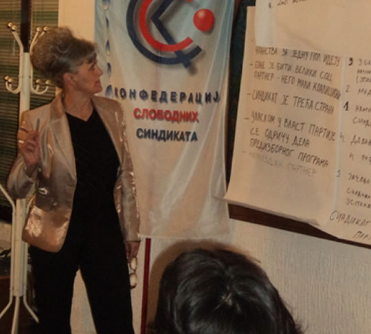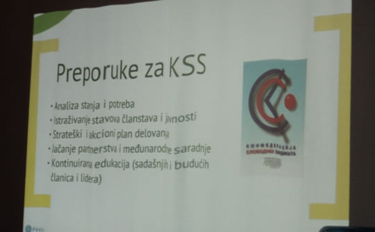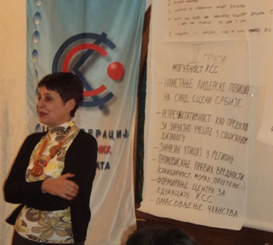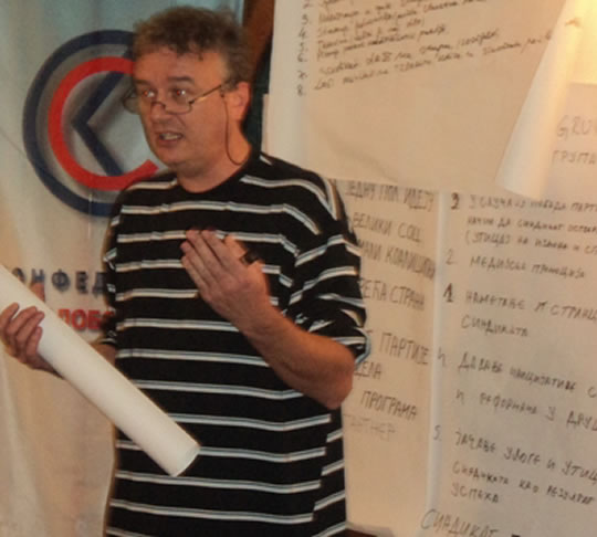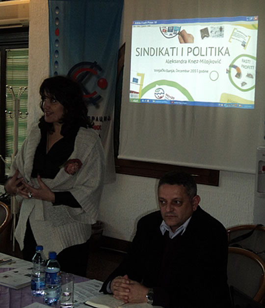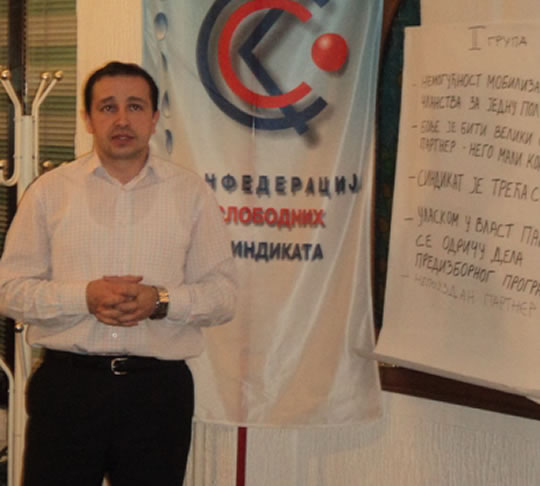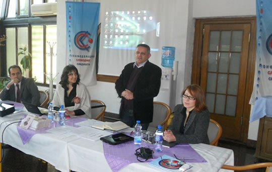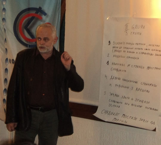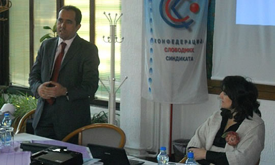 СЕМИНАР ЗА СИНДИКАЛНЕ ЛИДЕРЕКонфедерација слободних синдиката је 01. новембра организовала једнодневни семинар за синдикалне лидере у Врњачкој Бањи. Актуелне теме, СИНДИКАТИ И ПОЛИТИКА и СИНДИКАТИ И МЕДИЈИ водећи синдикални активисти су могли да чују из угла стручњака за ове области, Александре Кнез Милојковић, дугогодишњег међународног тренера за лидере и Иване Пешић, економског новинара и уредника РТВ Б92.Специјални гост на семинару био је Јован Протић, национални координатор Међународне организације рада у Србији.Учесници су имали прилике да изнесу своја искуства и да се подсете, какава је друштвена улога и одговорност синдиката и како да употребе медије за своје акције и циљеве. Према оцени свих учесника семинар је био веома успешан.У прилогу можете видети делове презентација и најзанимљивије детаље са семинара: