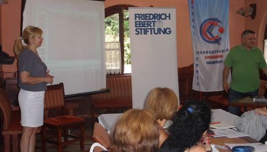 26.06.2012. ОРГАНИЗОВАНА ЖЕНСКА СИНДИКАЛНА МРЕЖА У ОКВИРУ КОНФЕДЕРАЦИЈЕ И ОДРЖАН СЕМИНАР ;"АКТИВАЦИЈА ЖЕНА У СИНДИКАЛНОМ РАДУ"У оквиру планираних активности за 2012. годину Конфедерација слободних синдикта је, у сарадњи са фондацијом FRIEDRICH EBERT STIFTUNG, организовала 21. и 22. јуна дводневни семинар "Активација жена у синдикалном раду" у Етно центру "Балашевић", код Бољевца, у подножју планине Ртањ. Предавач је била Ружица Јелисавац, саветница у Републичком заводу за социјалну заштиту. Семинар је имао карактер финалног, после више одржаних семинара из родне равноправности по регионалним повереништвима Конфедерације широм Србије. Семинар је показао да су жене веома заинтересоване и спремне да се активно укључе у решавање свих проблема са којима се сусрећу на послу, у породици и друштву уопште и да ће у томе имати подршку својих мушких колега у синдикату. Као резултат наведених активности на председништву Конфедерације је донета одлука о организовњу Женске синдикалне мреже у оквиру Конфедерације слободних синдиката и избору њених органа. На конститутивној седници Главног одбора Женске синдикалне мреже усвојена су Правила о раду ЖСМ КСС и Пословник о раду органа ЖСМ и изабрани органи: За председницу је изабрана Цвета Трифуновић из Гране социјалне заштите, а за њену заменицу Косара Станковић из Гране пошта телекомуникација и медија. У Извршни одбор ЖСМ, поред председнице, заменице и жена чланица Председништва КСС, које су по функцији чланице, изабране су: