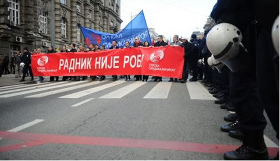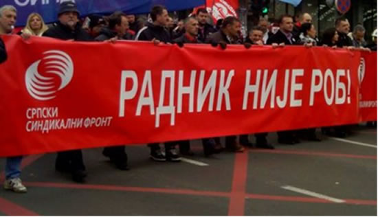 Око 3.000 чланова синдиката Српског синдикалног фронта данас су штрајковали против Закона о раду и штрајку. Након што су предали писмо на писарници Владе Србије, упућено премијеру Србије Ивици Дачићу и првом потпредседнику Александру Вучићу., штрајк је завршен, а чланови Синдиката су се мирно разишли.