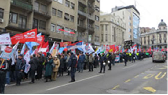 Неколико хиљада чланова Српског синдикалног фронта протестовало је у Београду захтевајући повлачење предложених измена Закона о раду.