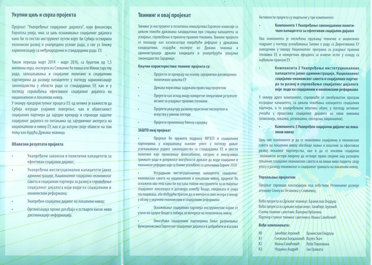 У прилогу је Упитник » који се односи на унапредјење функционисања социјалног дијалога у Србији.