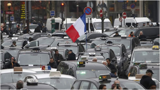 Полиција је саопштила да око 1.200 таксиста протестује у разним деловима Париза, док су њихове колеге пореметиле саобраћај у Тулузу, северном Лилу и јужном Марсеју.