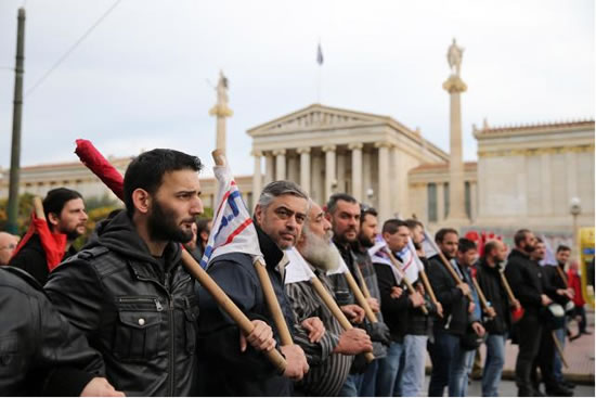 Атина -- Запослени широм Грчке обуставили су рад у знак протеста због пензионих реформи а земља је због масовног штрајка у блокади. ИЗВОР: ТАЊУГ ЧЕТВРТАК, 4.02.2016. | 08:42 -> 09:54