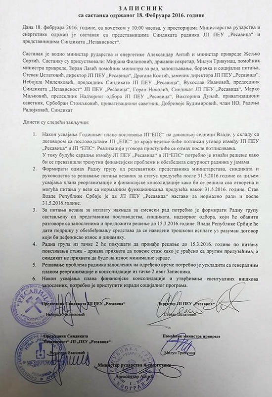 СИНДИКАТ РАДНИКА ЈП ПЕУ:ЗАПИСНИК СА ДАНАШЊЕГ САСТАНКА СА МИНИСТРИМА У ВЛАДИ РЕПУБЛИКЕ СРБИЈЕ