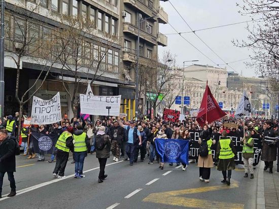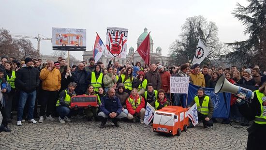 Такође, радницима се придружило и неколико стотина студената уз поруку "Студенти су уз раднике".
