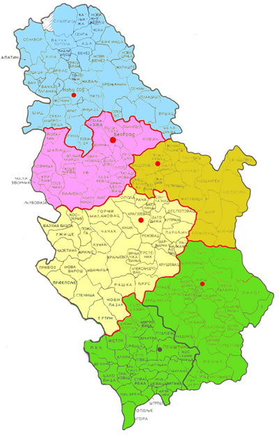 Чачка, Горњег Милановца, Јагодине, Параћина, Ужица, Нове Вароши, Сјенице и